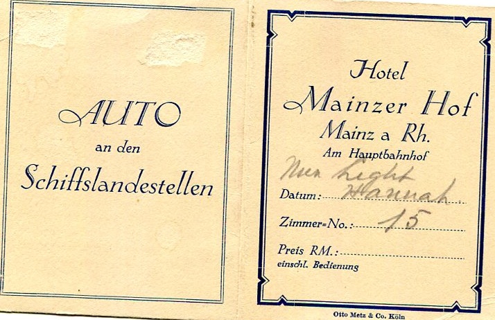 Germany Mainz Hotel Mainzer Hof Room Card 1935