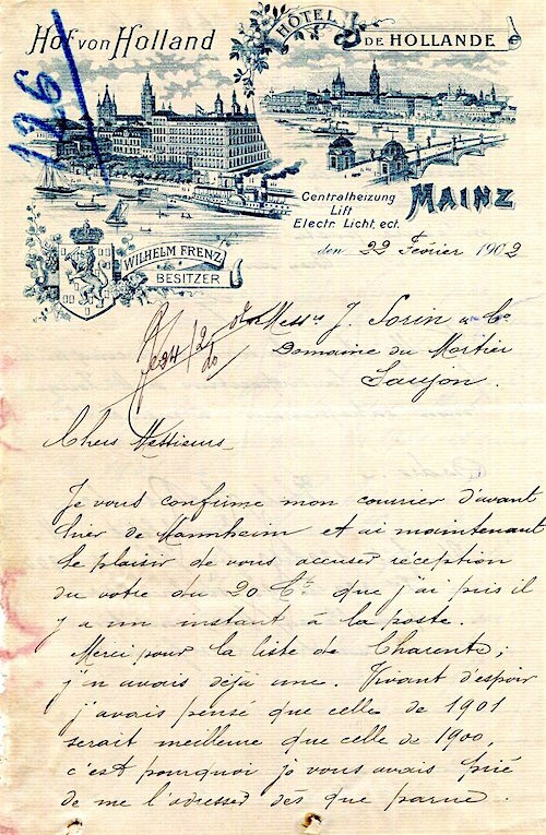 Germany Mainz Hotel von Holland Stationery 1902