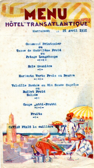 Morocco Marrakech Hotel Transatlantique Menu 1931 Front