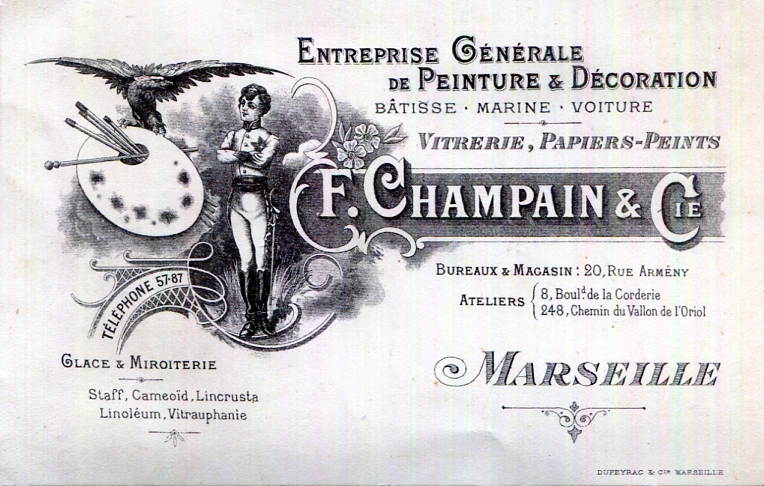 France Marseille Commerce F Champain Business Card Painting Decoration 1890