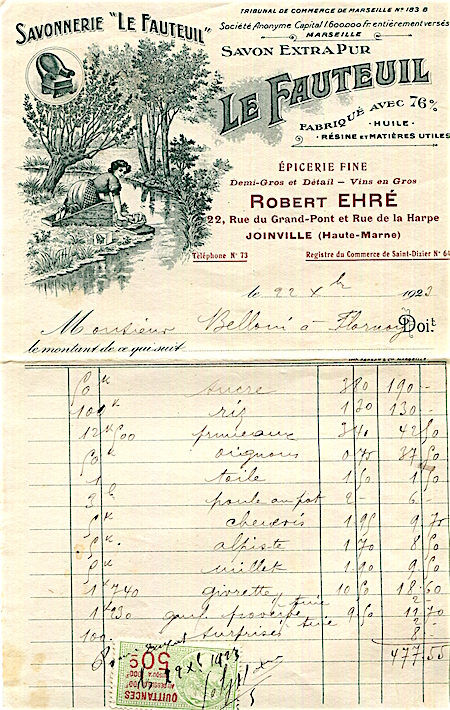 France Marseille Commerce Le Fauteuil Receipt Soap 1923