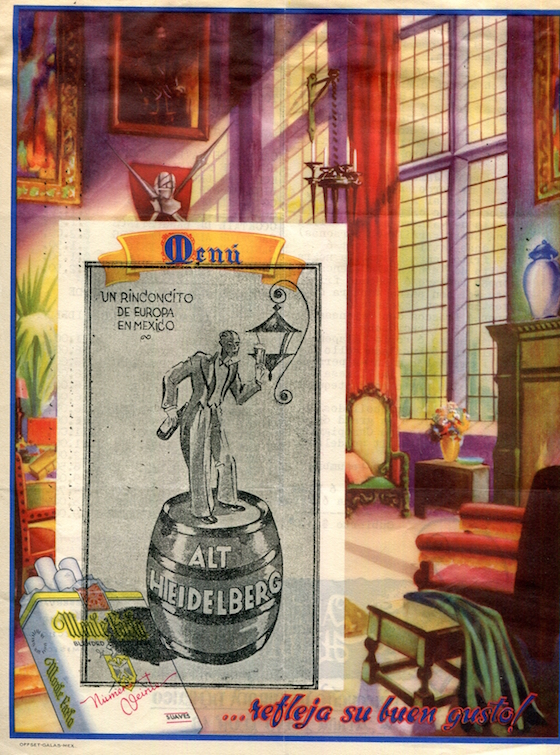 Mexico Mexico City Restaurant Alt Heidelberg Menu 1940 Back