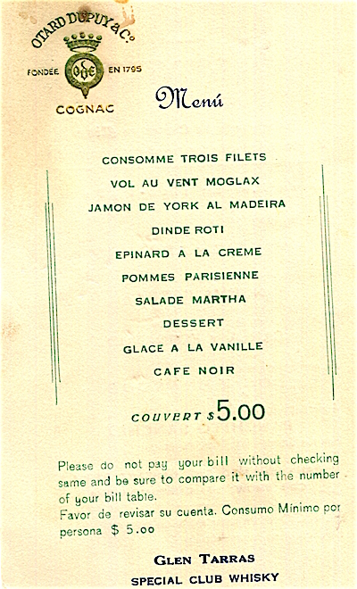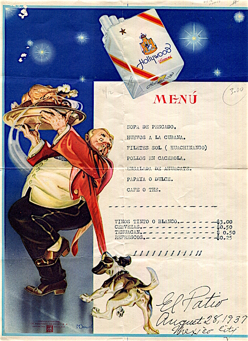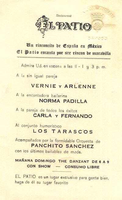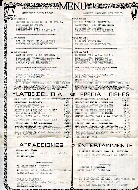 Mexico Mexico City Restaurant El Patio Menu 1937
