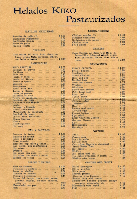 Mexico Mexico City Restaurant Kikos Kiko Menu 1931 Back
