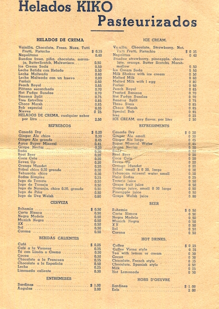 Mexico Mexico City Restaurant Kikos Kiko Menu 1931 Inside 1