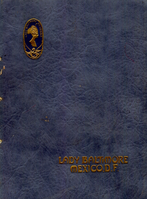 Mexico Mexico City Restaurant Lady Baltimore Menu 1938 Front