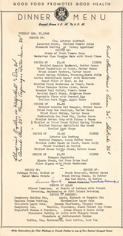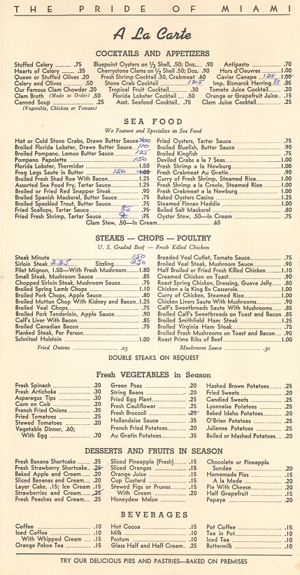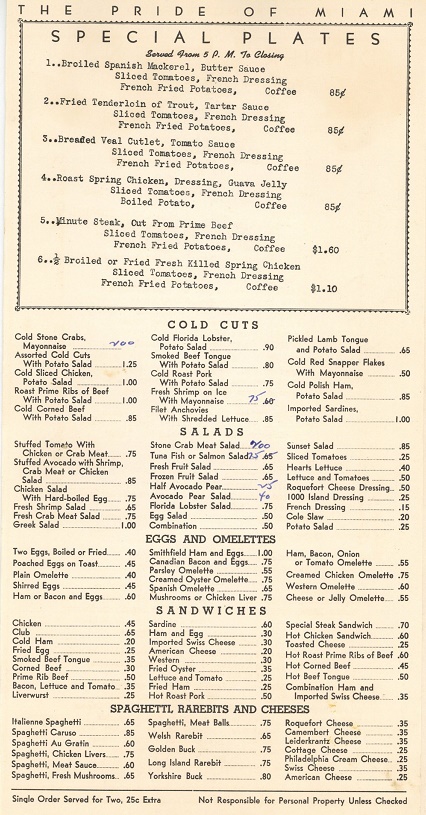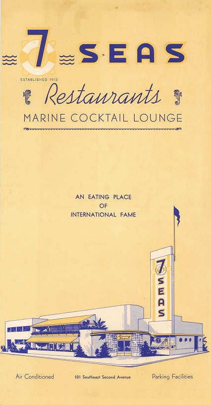 USA Florida Miami Menu Restaurant 7 Seas 1942 Inside 1