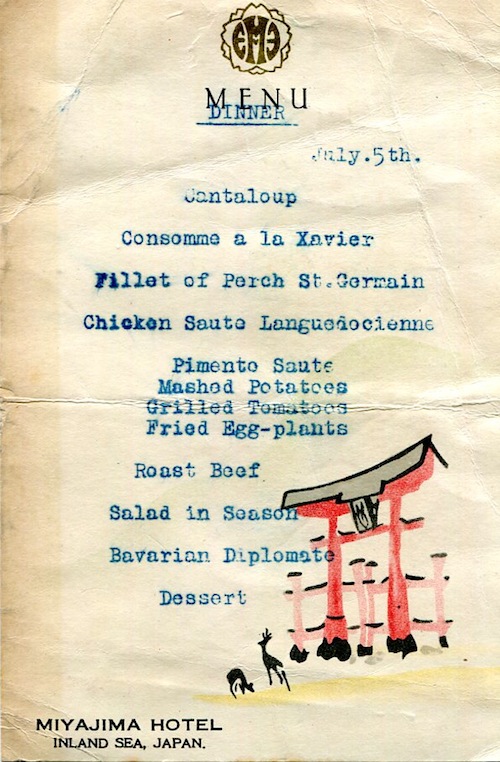 Japan Miyajima Menu Miyajima Hotel 1937