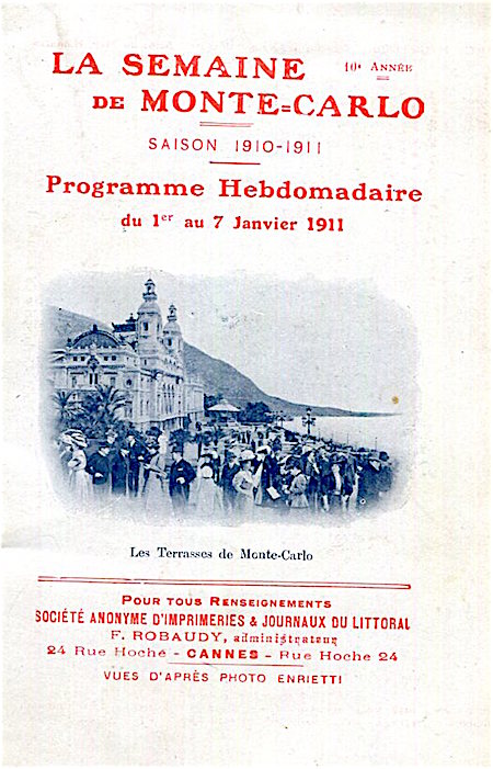 Monaco Monte Carlo Entertainment Concert Program 1911 Front