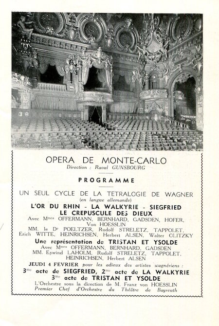 Monaco Monte Carlo Entertainment Opera De Monte Carlo Program Le Crepuscule Des Dieux 1937 Inside 3