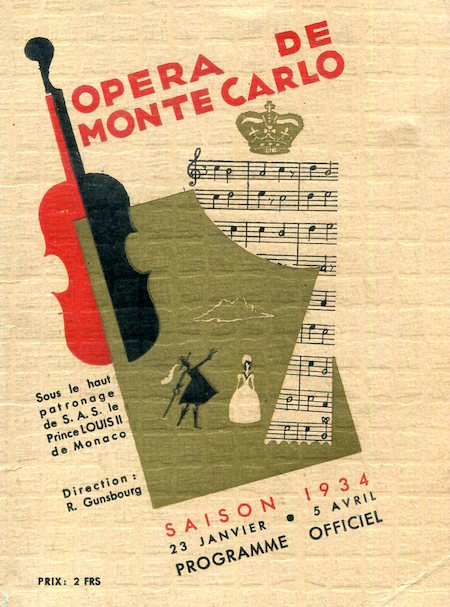 Monaco Monte Carlo Entertainment Opera Program 1934 1 Front
