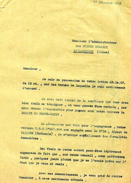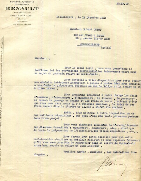 Monaco Monte Carlo Letter Rally Renault 1932