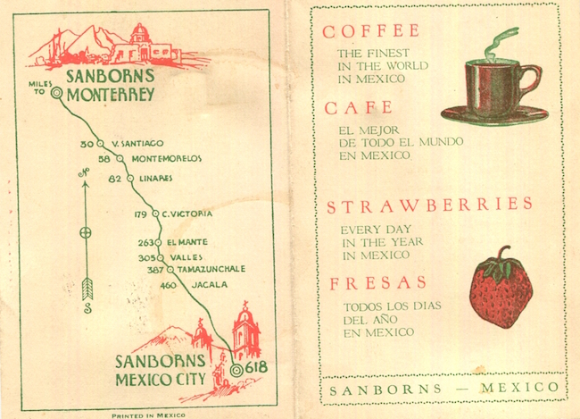 Mexico Monterrey Restaurant Sanborns Brochure 1938 Inside