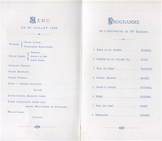 Russia Moscow Royalty Aristocracy Menu Ryabov Orchestra 1893 Inside