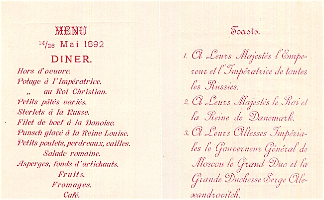 Russia Moscow Royalty Aristocracy Catherine IX Birthday Menu 1892 Front
