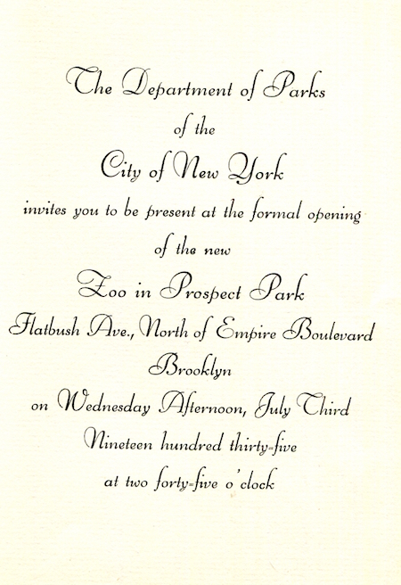 USA New York NYC Invitation Prospect Park Zoo 1935 Inside
