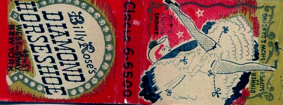 USA New York NYC Matchbook Night Club Billy Roses Diamond Horseshoe 1943