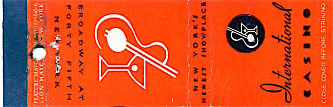 USA New York NYC Matchbook Night Club International Casino 1934