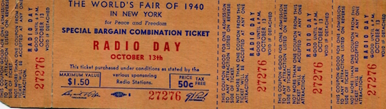 USA New York NYC Ticket Radio Day Worlds Fair 1940