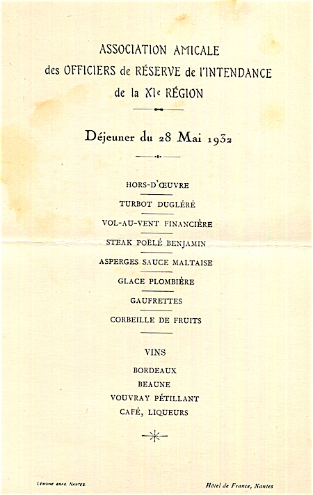 France Nantes Hotel De France Menu 1932