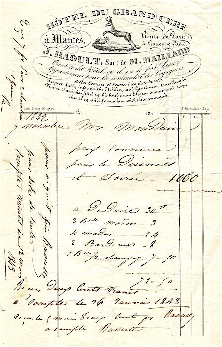 France Nantes Hotel Du Grand Cerf Receipt 1842