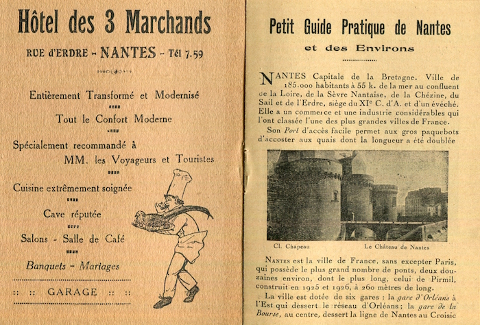 France Nantes Hotel Hostellerie Des 3 Marchands Brochure 1924 Front