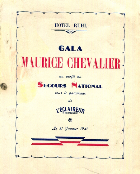 France Nice Hotel Ruhl Menu Maurice Chevalier 1941 Front
