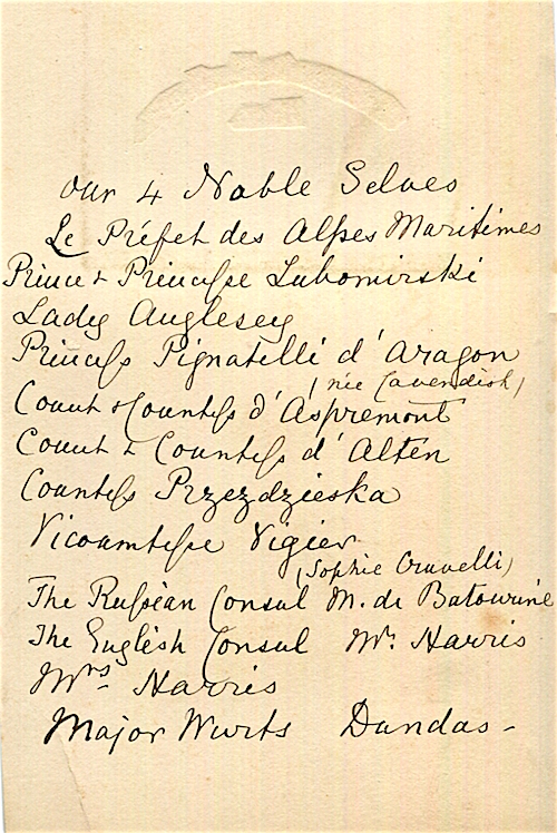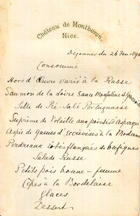 France Nice Menu Chateau De Montboron 1894 Front