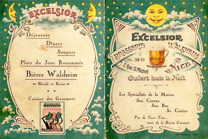 France Nice Menu Brasserie Tantonville 1899