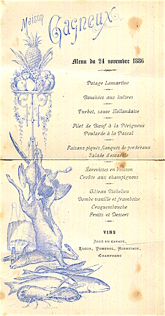 France Nice Menu Maison Gagneux 1886