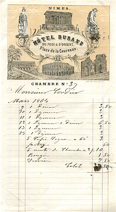 France Nimes Hotel Dutand Receipt 1864