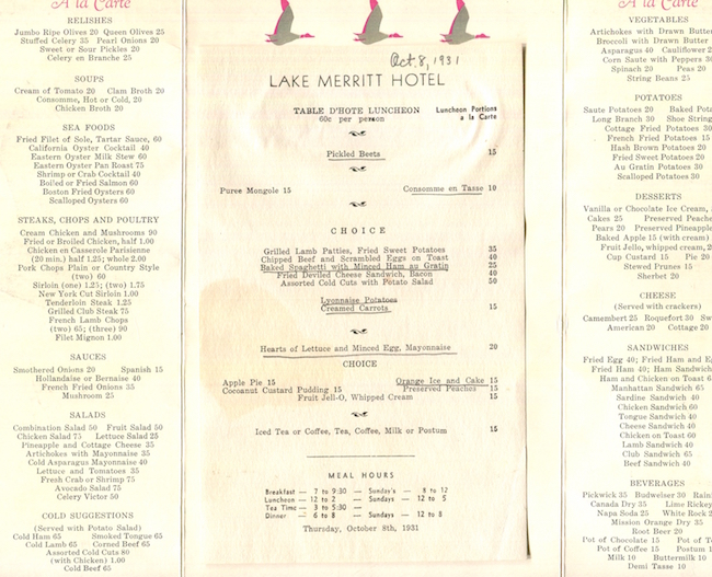 USA California Oakland Hotel Lake Merritt Menu 1931 Inside