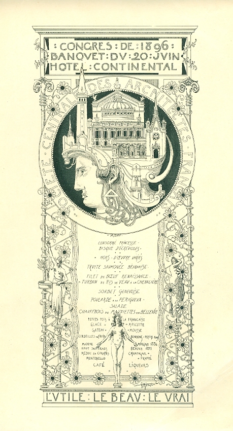 France Paris Menu Hotel Continental 1896