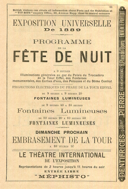 France Paris Program Exposition Universal 1889 1