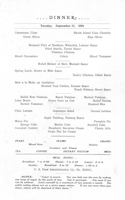 USA Maine Poland Menu Hotel Mansion House Christmas Day Poland Springs 1922 Inside