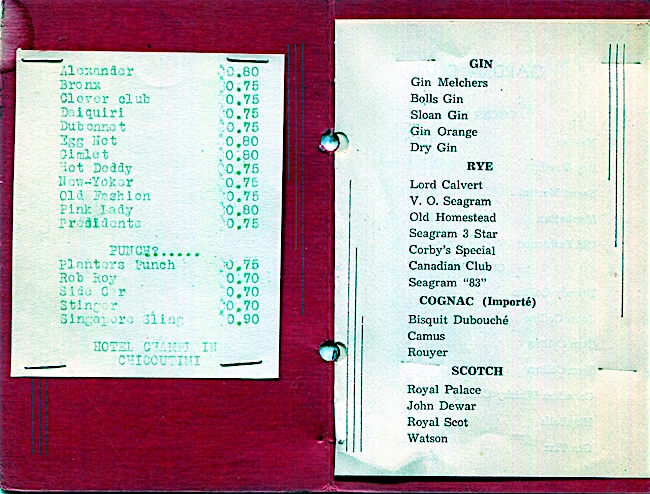 Canada Quebec Hotel Wine Menu Champlain 1934 Inside