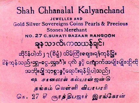 Burma Rangoon Commerce Shah Chhanalal Kalyanchand Tag 1937 Back