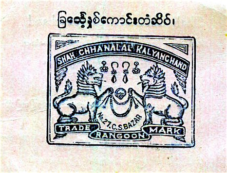 Burma Rangoon Commerce Shah Chhanalal Kalyanchand Tag 1937 Front
