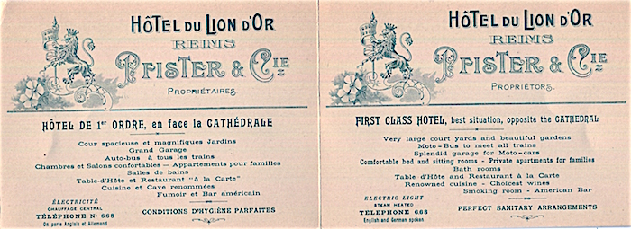 France Reims Hotel Du Lion d Or Business Card 1912 Inside