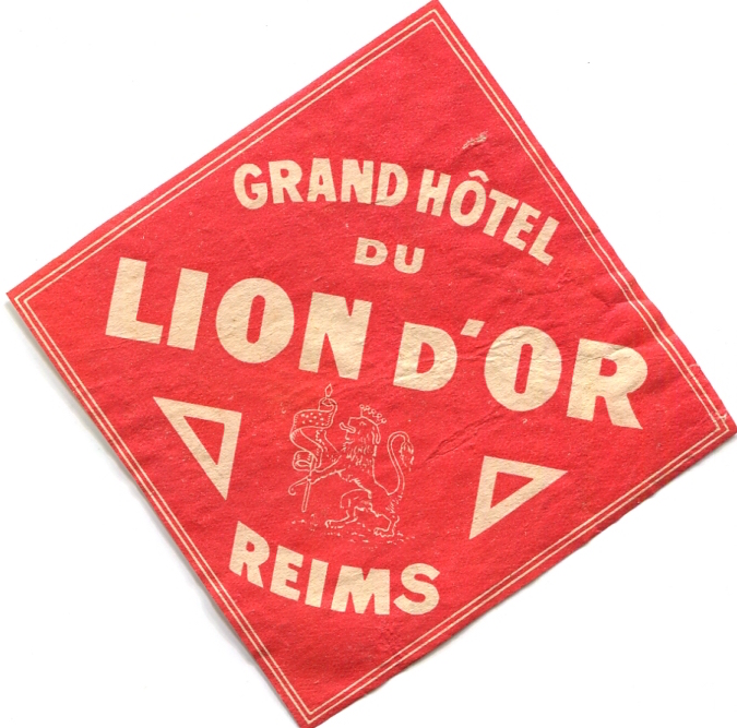 France Reims Hotel Grand Du Lion D Or Luggage Label 1938