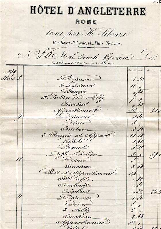 Italy Rome Hotel D Angleterre Receipt 1879