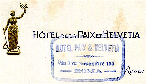 Italy Rome Hotel De La Paix Et Helvetia Business Card 1928