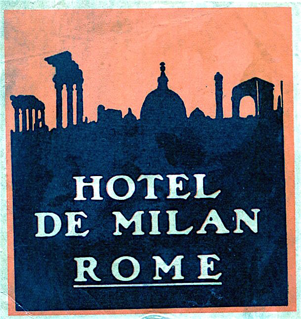 Italy Rome Hotel De Milan Luggage Label 1920