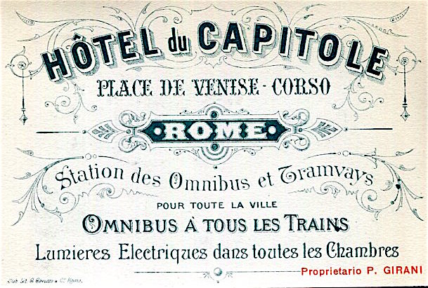 Italy Rome Hotel Du Capitole Business Card 1899