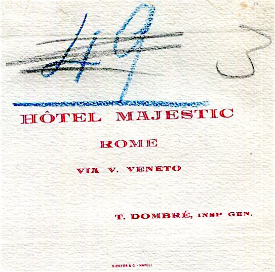 Italy Rome Hotel Majestic Room Card 1924