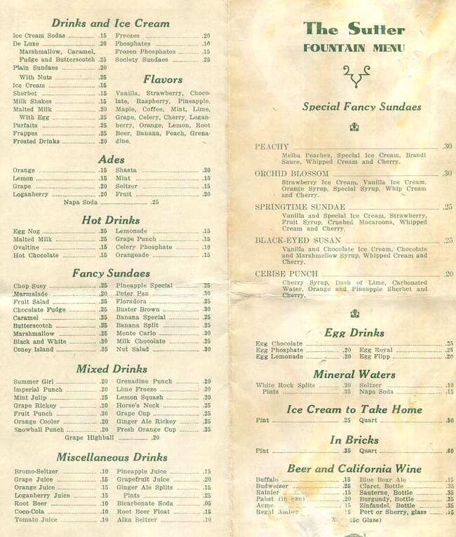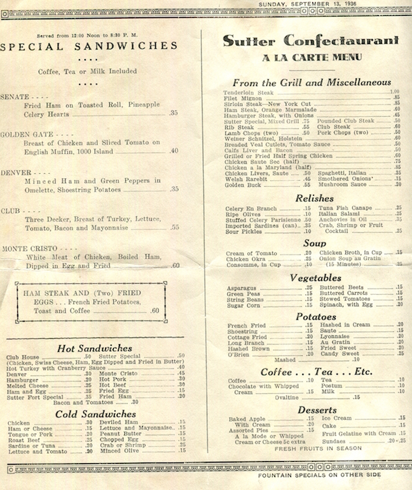 USA California Sacramento The Sutter Restaurant Menu 1936 Inside 1