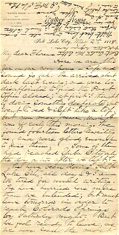 USA Utah Salt Lake City Letter Hotel Walker House 1889