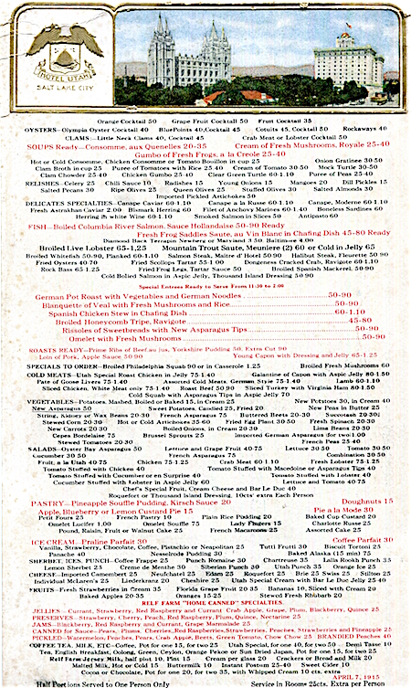 USA Utah Salt Lake City Menu Hotel Utah 1915