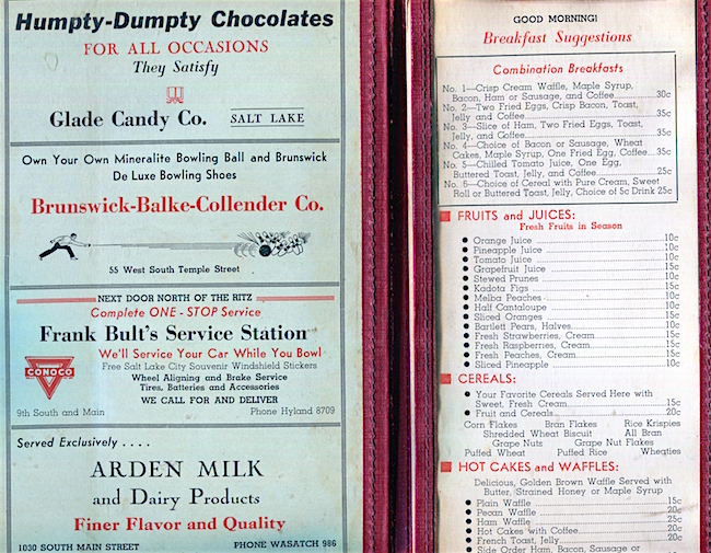 USA Utah Salt Lake City Menu Ritz Cafe Fountain Service 1920 Inside 2