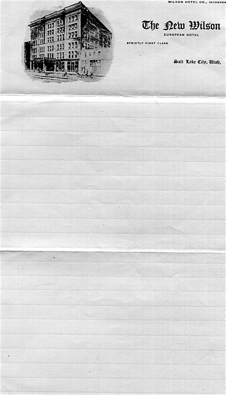 USA Utah Salt Lake City Stationery Hotel Wilson 1915